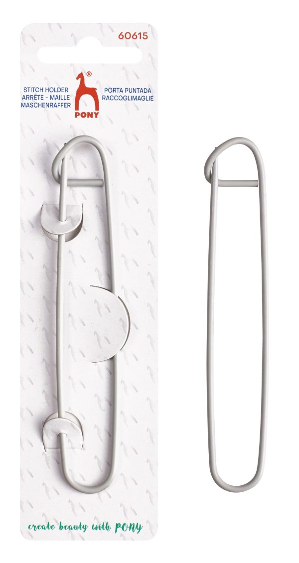 Essential knitting tool used to separate stitches when knitting collars, cable patterns or when using different yarns. Hold stitches while knit project is not in use and stop them from sliding off the needle. Pony Stitch Holders close like safety pins and the secure locking design makes it easy to hold stitches without snagging your knit.